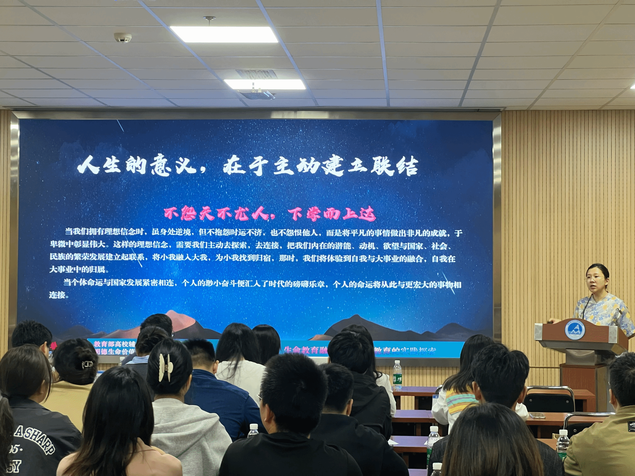 本次沙龙特邀全国优秀教育工作者、教育部高校辅导员访问学者、天津医科大学郭琳副教授担任主讲人。凭借17年不间断的一线辅导员工作积淀,郭琳老师直面当代青年对生命意义的困惑与迷思,聚焦自然生命、社会生命和精神生命三个维度,系统阐述了生命教育与思政教育深度融合的路径与方法。她通过真实的教育案例与实践模型,展示了如何引导学生在认识自我、探索意义的过程中,将个人成长自觉融入国家发展大局,从而延展生命的长度、拓宽生命的宽度、提升生命的高度,最终实现全面发展。