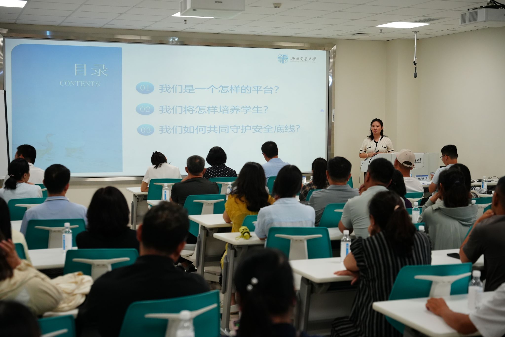 杨兴鹏老师围绕“大学新生心理适应与家校共育”这一主题,为家长提供了专业建议,引导家长与学生共同成长。他通过学习方式、评价体系、人际关系、心理压力的转变,系统分析了大学与高中培养模式的显著差异,通过分享有效的沟通技巧和生涯规划方法,帮助家长实现从“管理者”到“支持者”的转变。他指出,家长应积极关注孩子的心理状态,进一步深化家校合作,共同做好新生的情绪支持与适应引导,护航学生健康成长。